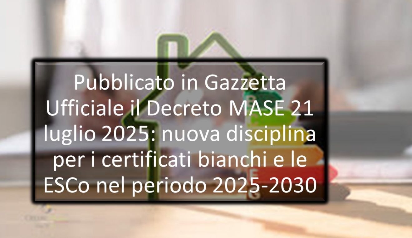 Il Decreto Ministeriale 21 luglio 2025, pubblicato sulla Gazzetta Ufficiale n. 211 dell’11 settembre 2025, aggiorna la disciplina dei Certificati Bianchi (Titoli di Efficienza Energetica - TEE) per il periodo 2025-2030. Composto da 21 articoli e allegati tecnici, il decreto definisce: soggetti obbligati e ammessi, obiettivi nazionali di risparmio energetico, criteri di ammissione e modalità di valutazione...