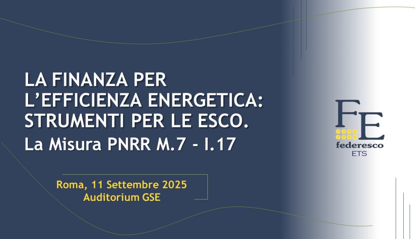 L’11 settembre 2025, a Roma presso l’Auditorium GSE, Federesco ha organizzato il convegno “La finanza per l’efficienza energetica: strumenti per le ESCo”, un momento qualificante di confronto sulle opportunità offerte dalla misura PNRR M.7 – I.17 e sul valore strategico delle Energy Service Company nella promozione di una green economy sostenibile ed efficiente.La giornata ha visto l’intervento...
